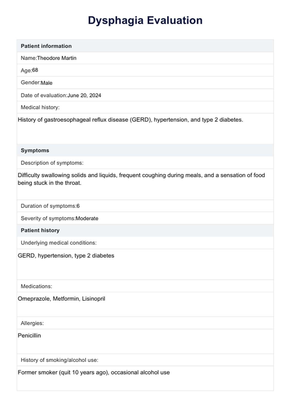 Learn about the importance of Dysphagia Evaluation and gain insights through Carepatron's free PDF download. Explore examples and tips for assessing swallowing difficulties.