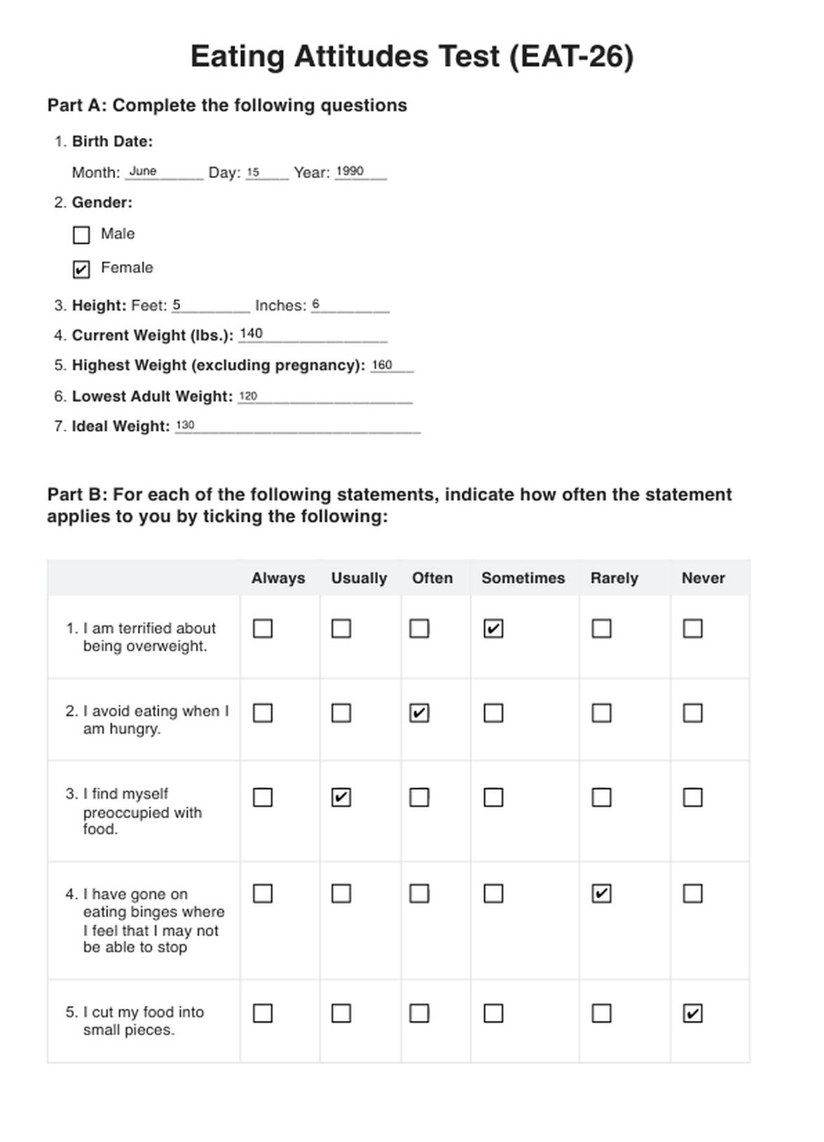 Discover the benefits of using the Eating Attitudes Test (EAT-26) in our comprehensive guide. Learn how Carepatron can streamline your EAT-26 assessments.