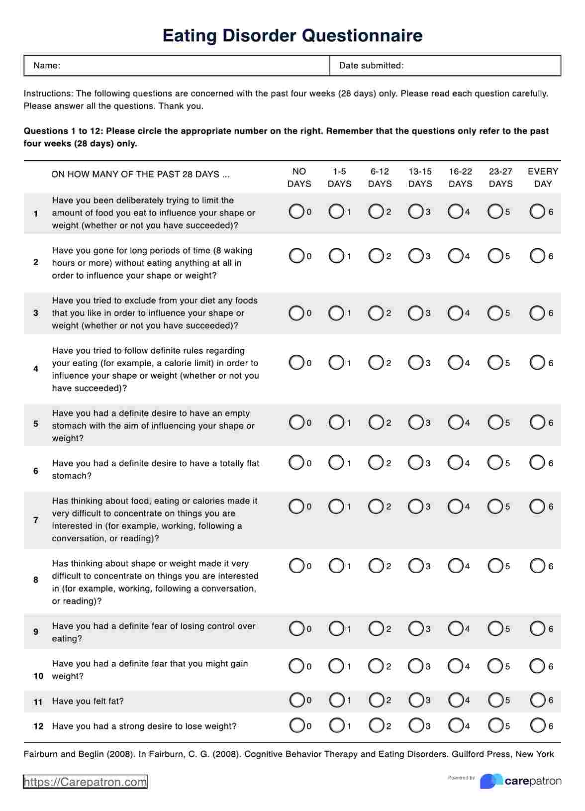 Assess eating disorder behaviors with our Eating Disorder Questionnaire. Guide clients towards healthier eating habits & recovery.
