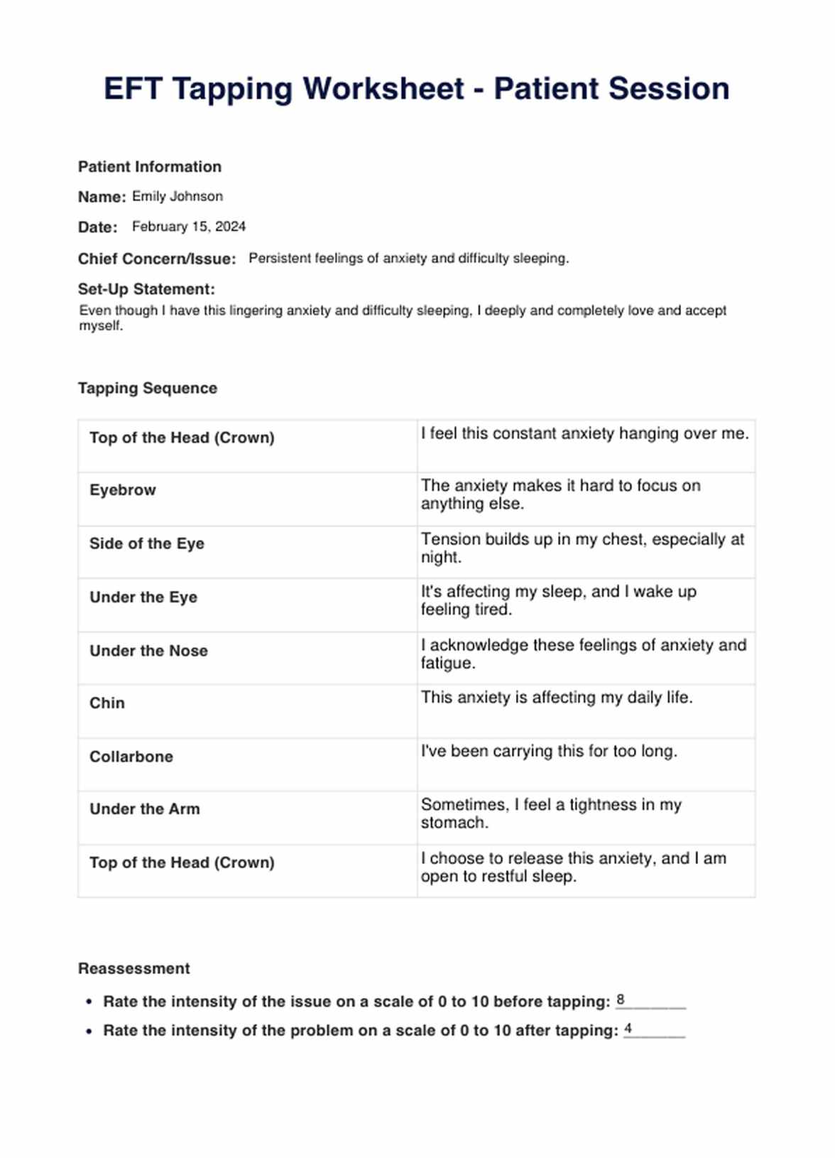 EFT Tapping Worksheet Template