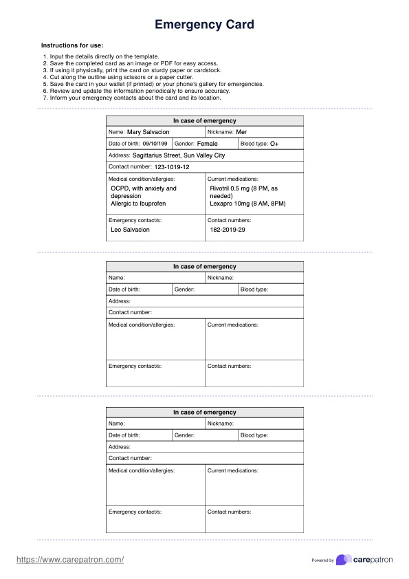 Emergency cards provide peace of mind to individuals and their loved ones by ensuring that essential medical information is readily available in an emergency. They also save time for healthcare providers, allowing them to access critical information and provide appropriate care quickly.