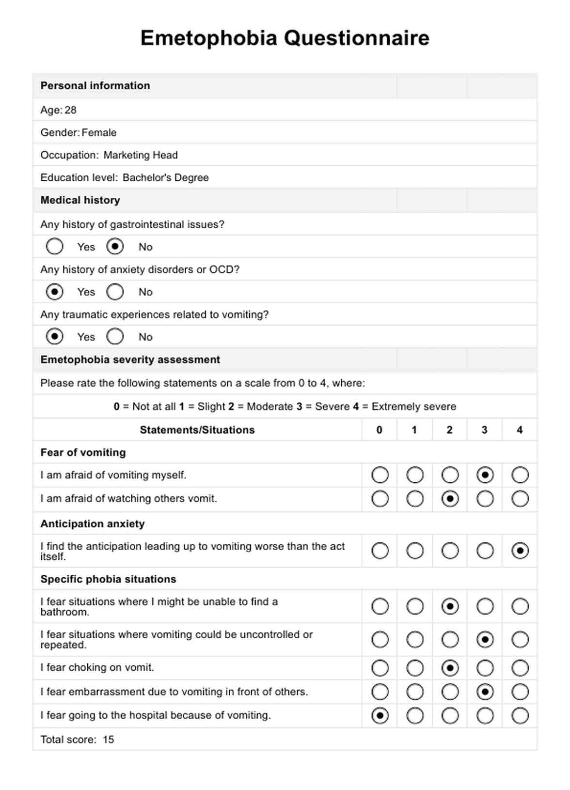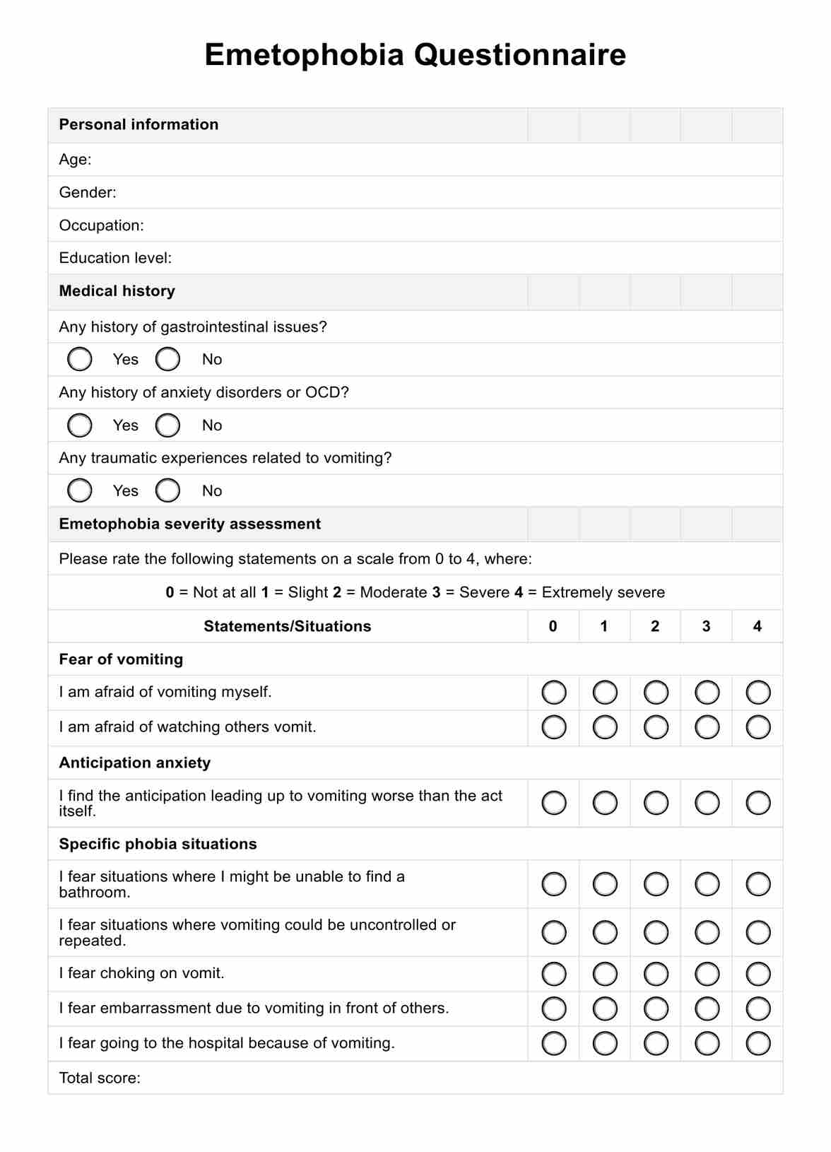 Emetophobia Questionnaire Template