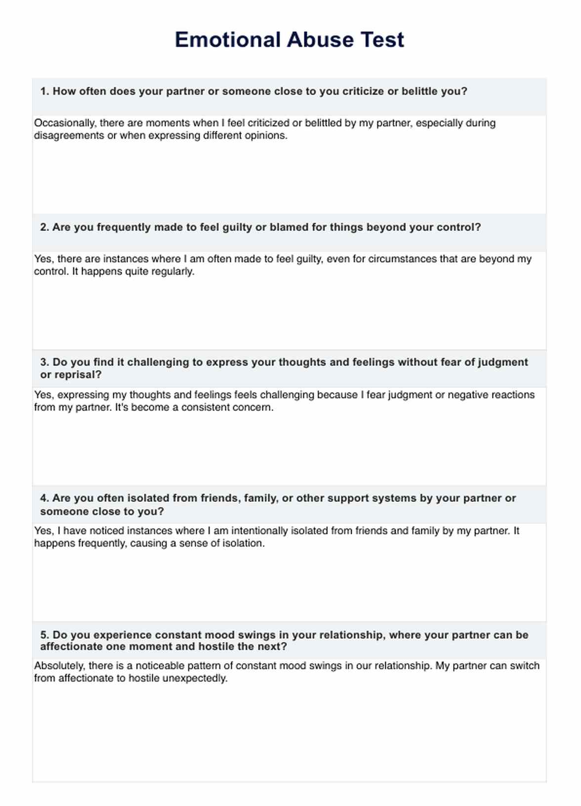 Emotional Abuse Test Template