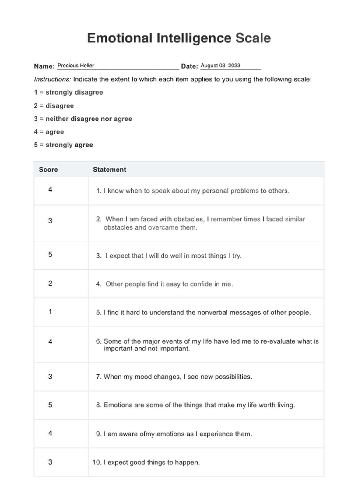 Emotional Intelligence Scale Template