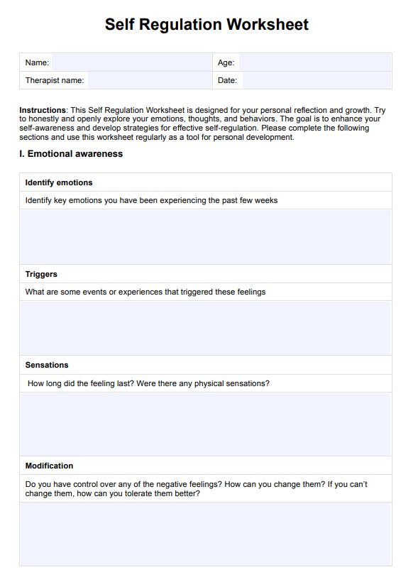 Enhance emotional well-being and emotional intelligence with our practical Emotional Regulation Worksheet. Manage stress, improve self-awareness, and foster emotional resilience.