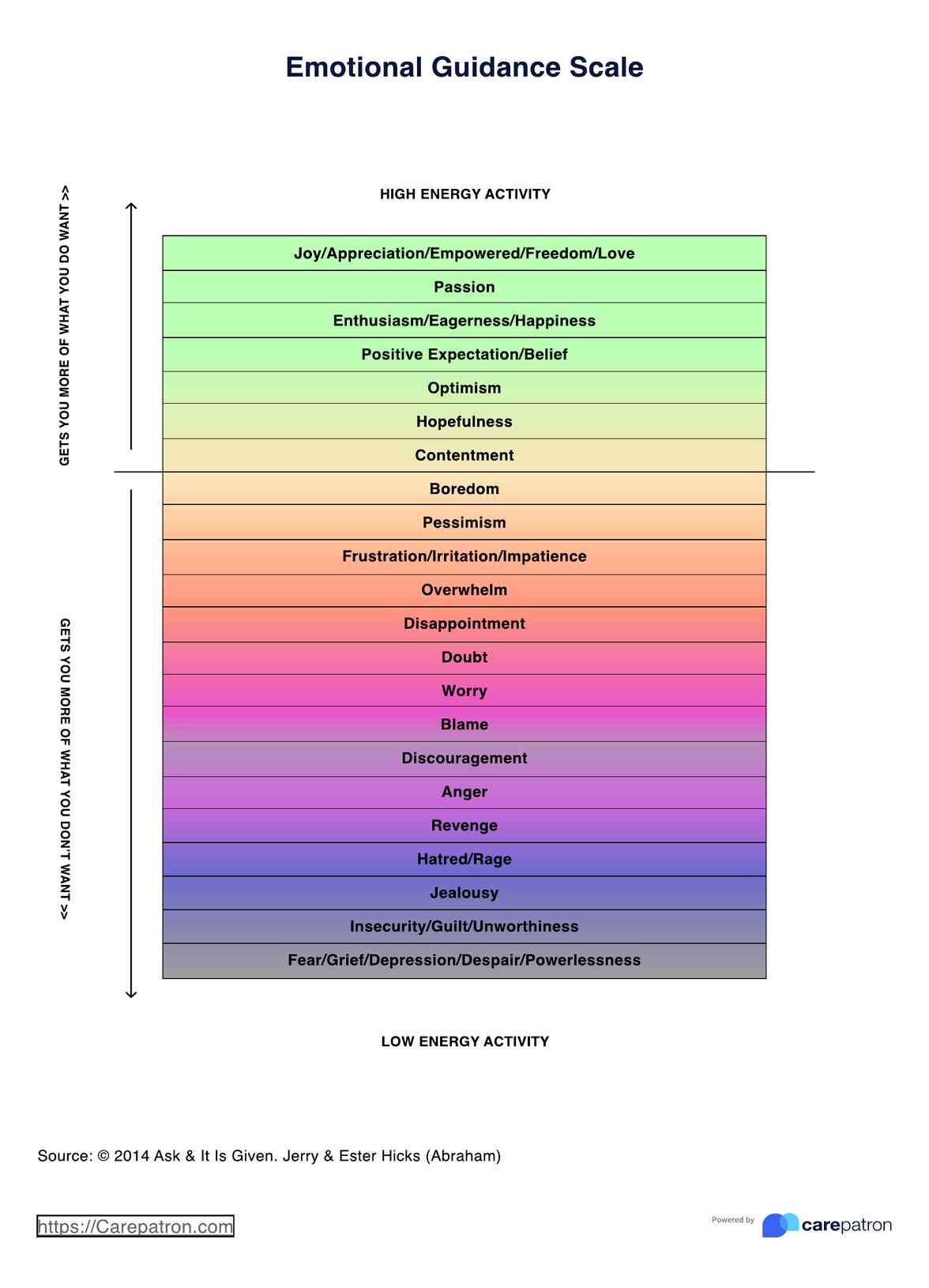 The Emotional Scale is used in various situations, including personal development, therapy, counseling, stress management, relationship building, and decision-making. It can be beneficial during challenging times or when seeking emotional balance and well-being.