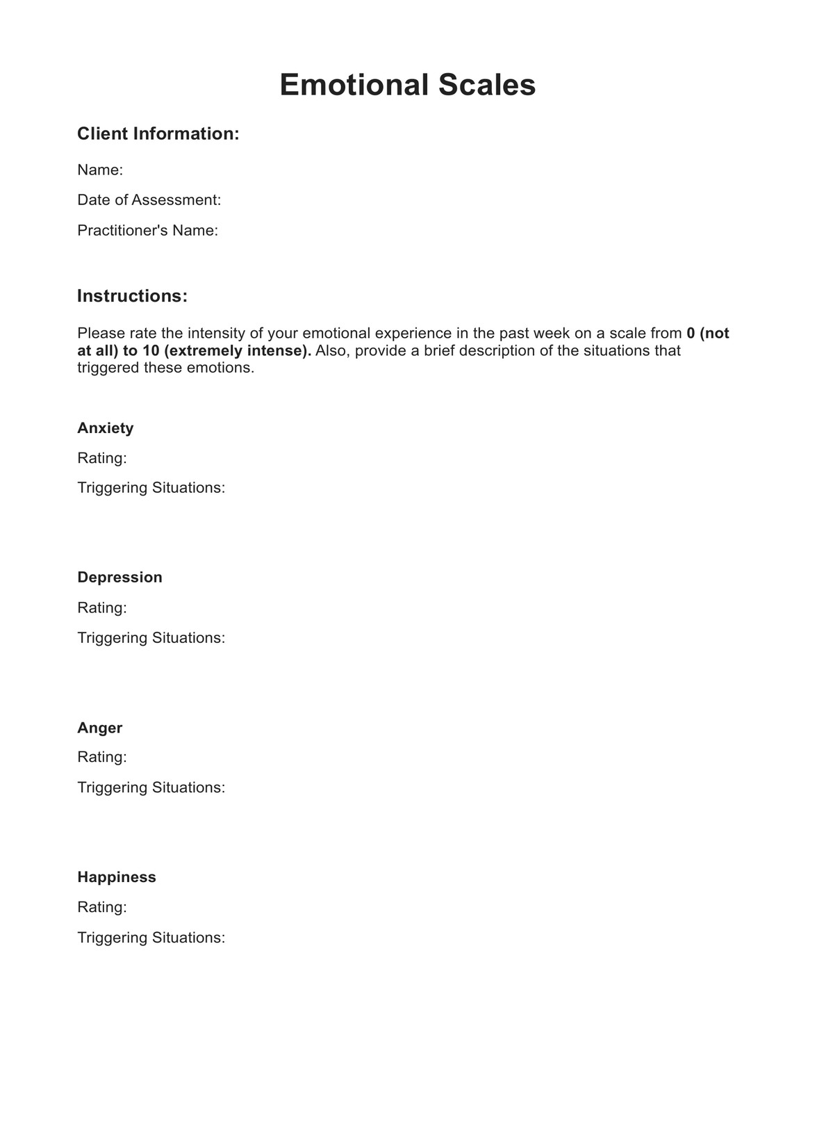 Discover Emotional Scales: Understand emotions, nurture awareness, and promote growth. Enhance your client's well-being with this powerful tool.