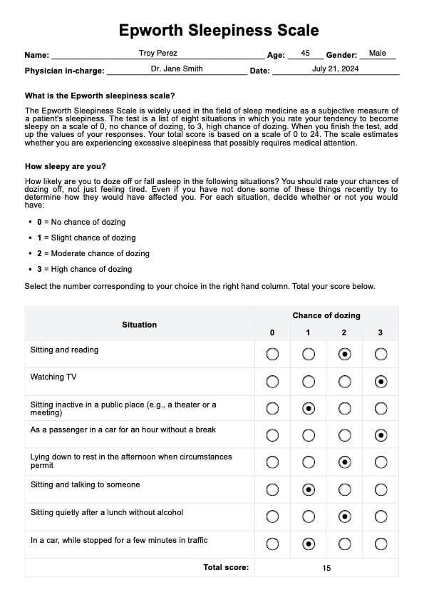 Epworth Sleepiness Scale (ESS) Template