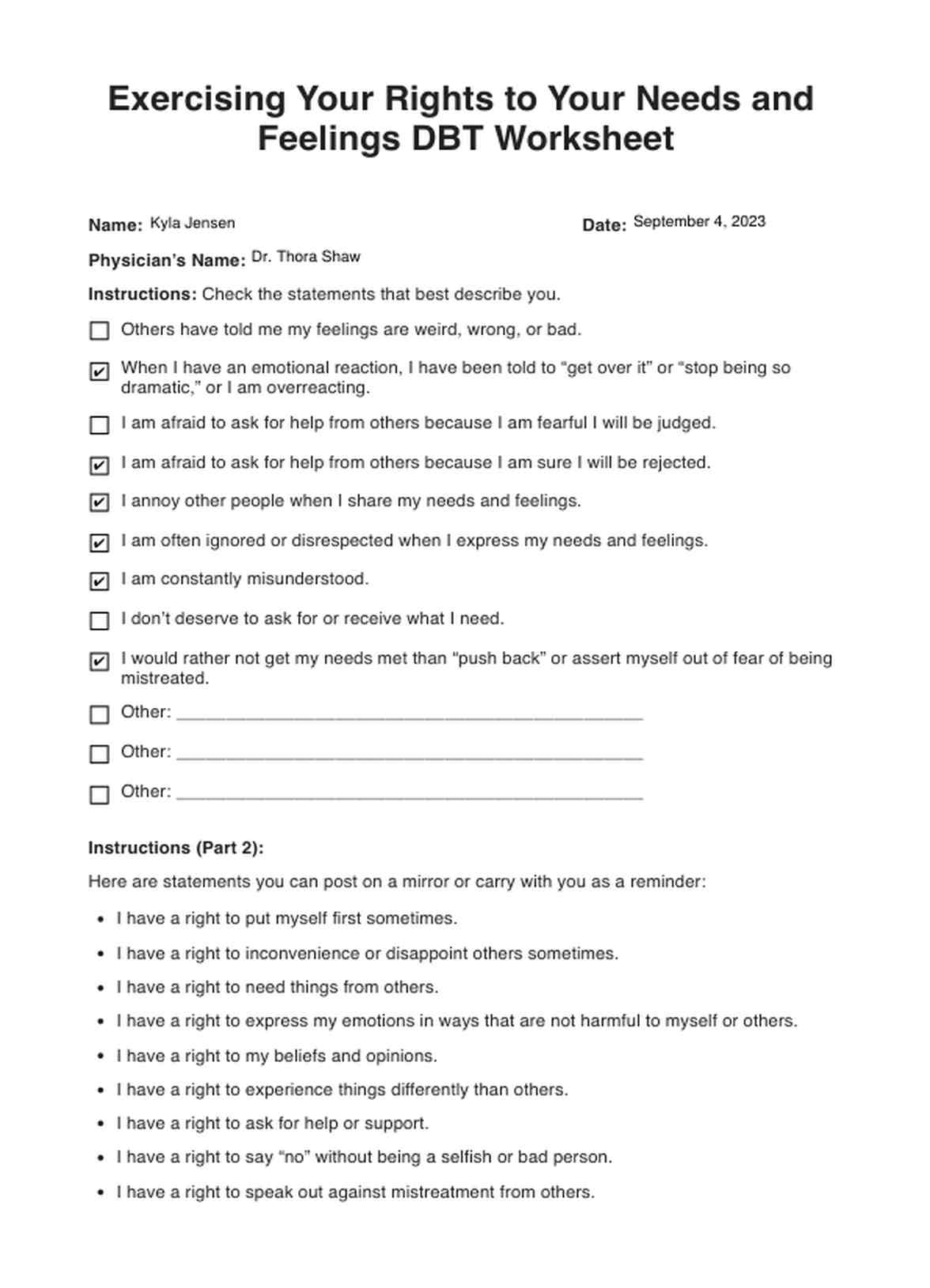 Exercising Your Rights to Your Needs and Feelings DBT Worksheet Template