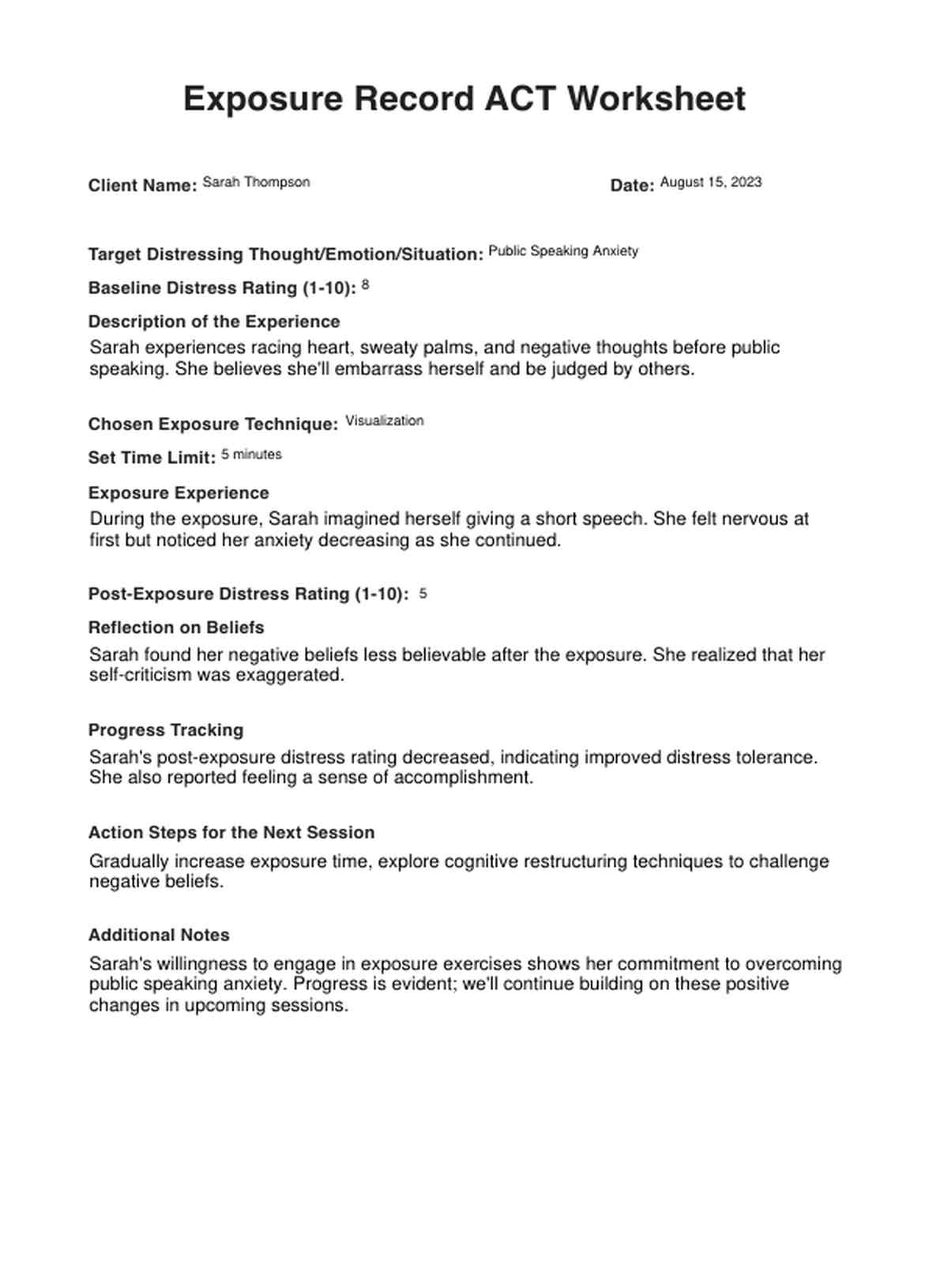 Exposure Record ACT Worksheet Template