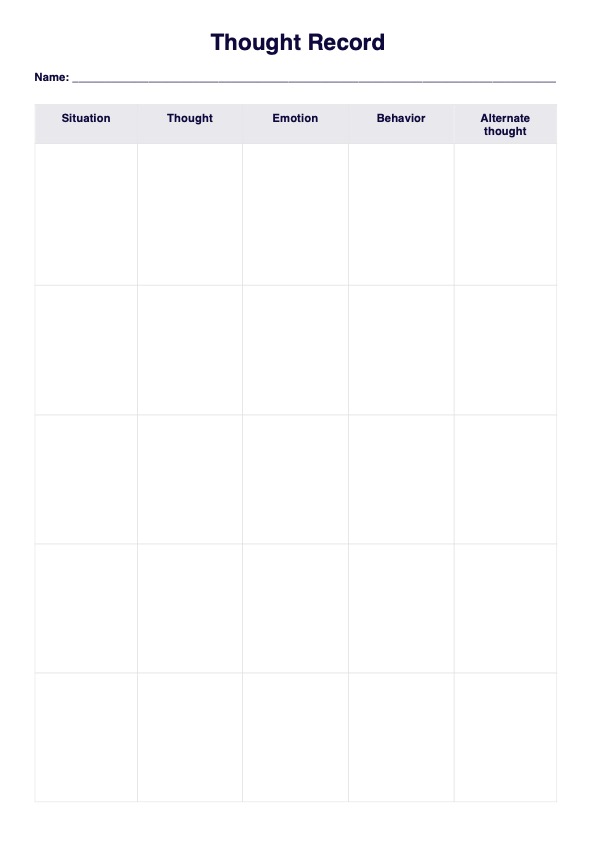 Exposure Response Prevention Worksheet Template