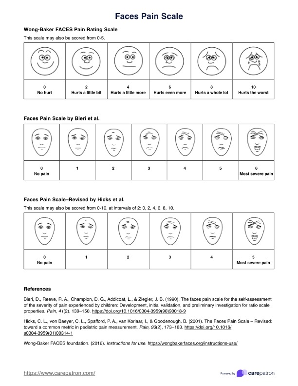 Improve how you assess patient pain with our FACES Pain Scale template. Better understand their pain severity and improve how you plan pain management.
