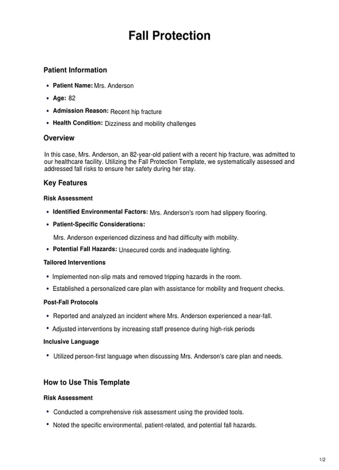 Enhance patient safety with our Fall Protection Template! Tailored risk assessments, interventions, and post-fall protocols for a secure healthcare environment.