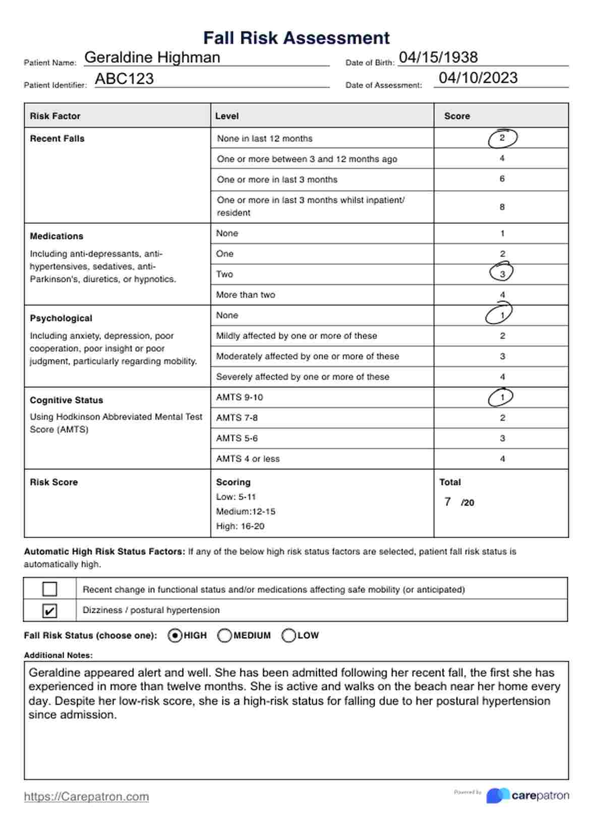 Fall Risk Assessment Template