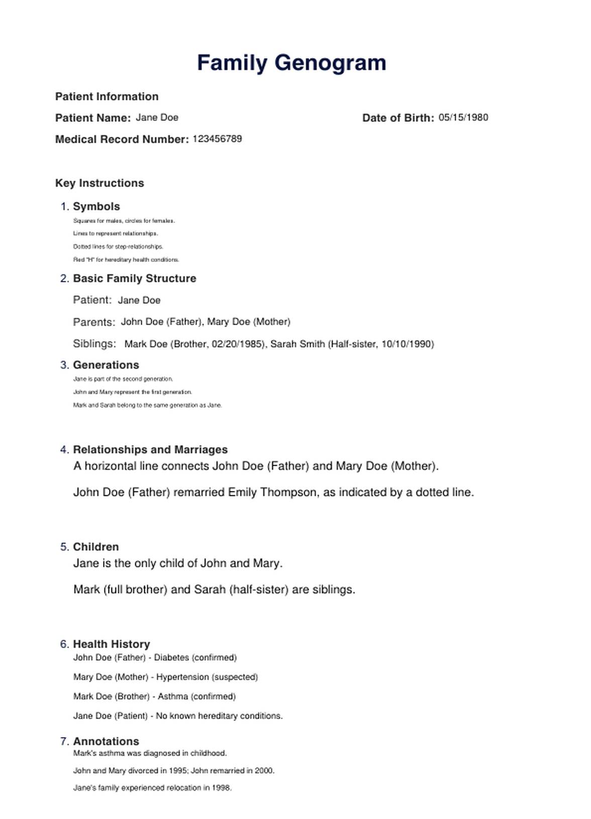 Create insightful Family Genograms effortlessly with our user-friendly Family Genogram Template. Visualize relationships, health history, and more. Start today!