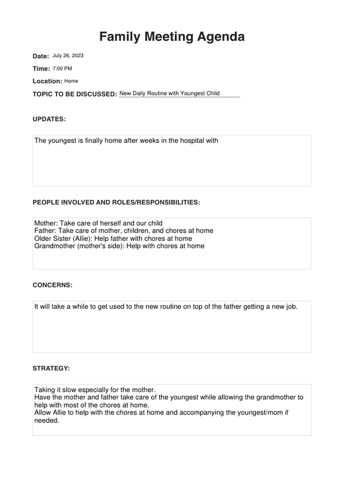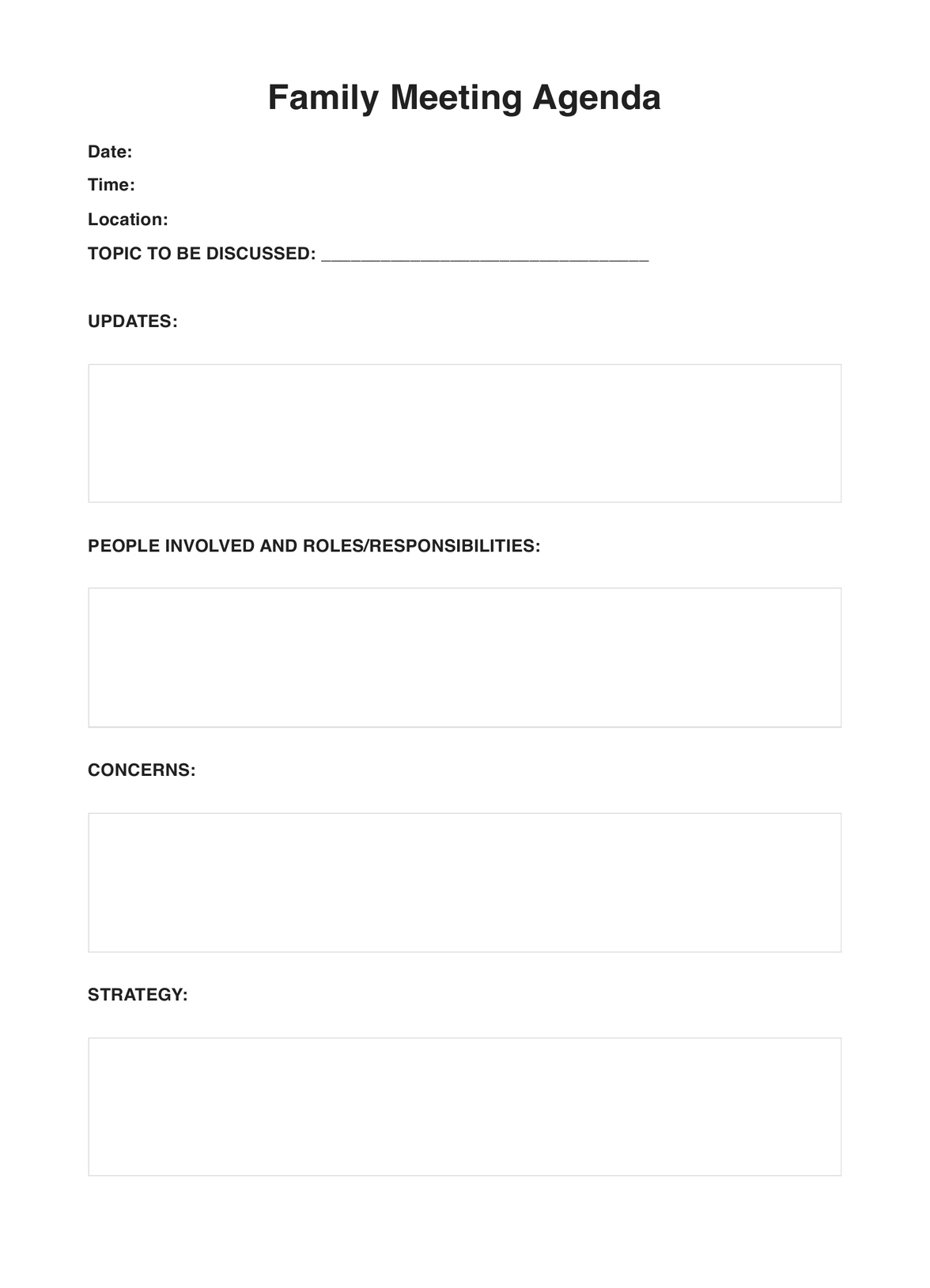 Provide your patient's or client's family with a family meeting agenda template to improve their family bond or during times of turmoil.