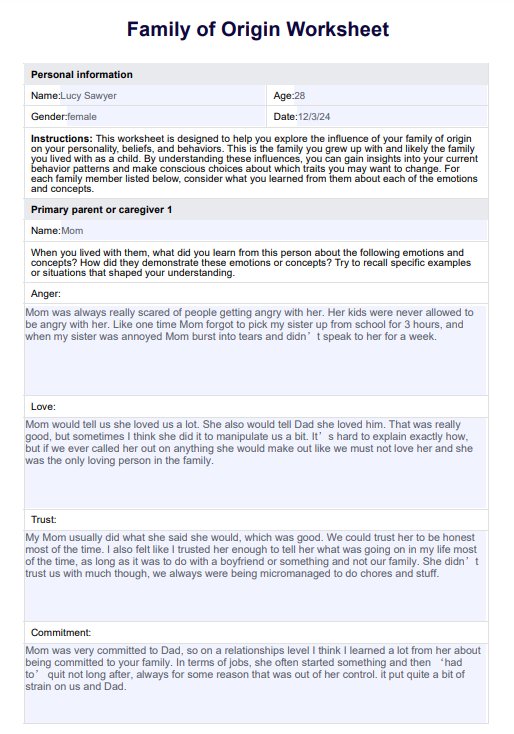 Access our Family of Origin Worksheet template, designed to help clients understand the impact of their familial background on their personality and behavior.