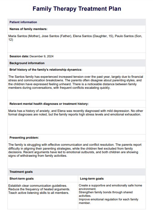 Family Therapy Treatment Plans