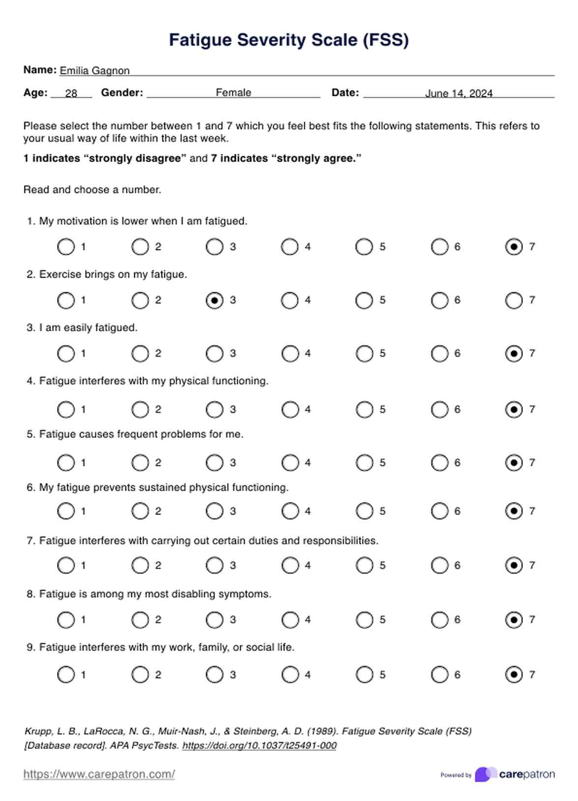 The Fatigue Severity Scale (FSS) is useful for measuring fatigue levels. Get Carepatron's free PDF download to use this scale effectively.