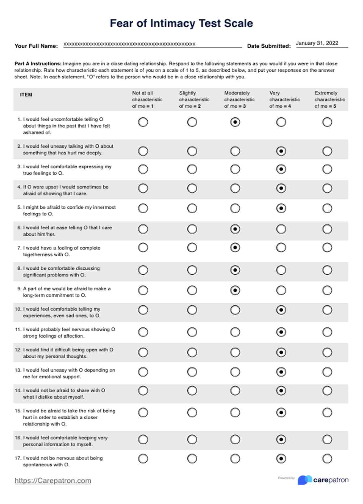 The duration of answering the test may vary depending on how it is administered. If given to the patient to answer independently, it typically takes between five to ten minutes. However, if the test is conducted as an interview-style assessment, it can potentially take longer than the initial estimate of five to ten minutes.