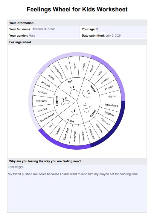 Using the Feelings Wheel For Kids Worksheets isn’t just limited to therapy. As long as you work with children, you can use this template to understand children better and encourage them to express their feelings.