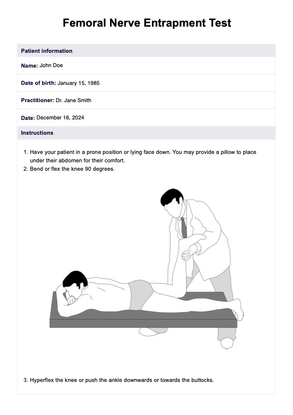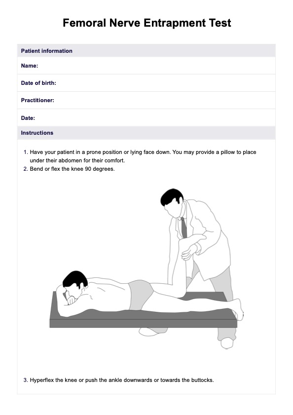Assess your patient's femoral nerve with the Femoral Nerve Entrapment Test. Access a free template and a comprehensive guide to performing the test effectively.