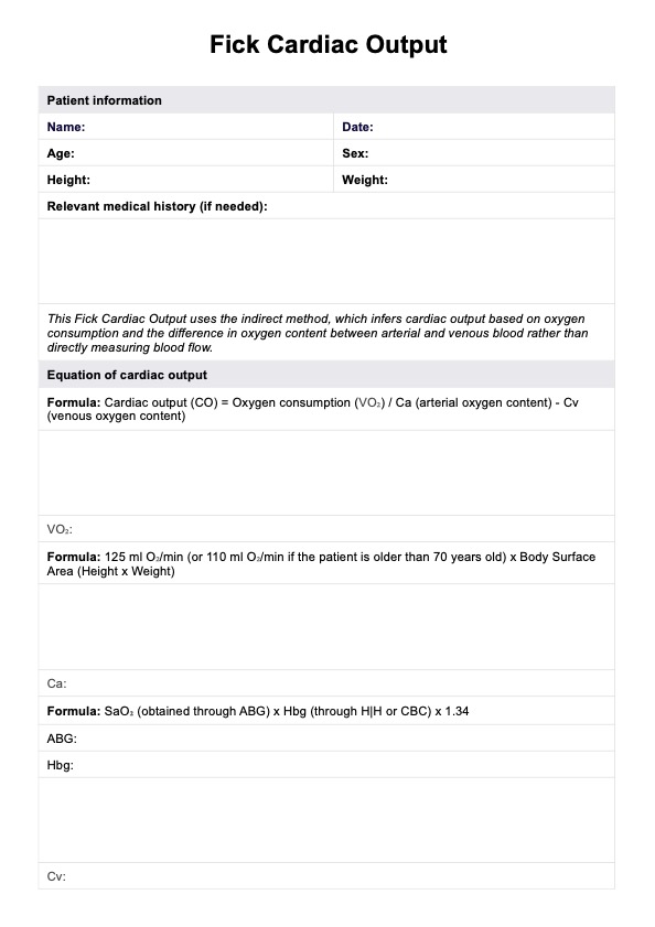 Enhance cardiac assessments with the Fick Cardiac Output measurement. Download a comprehensive PDF template for structured evaluations. Optimize patient care.