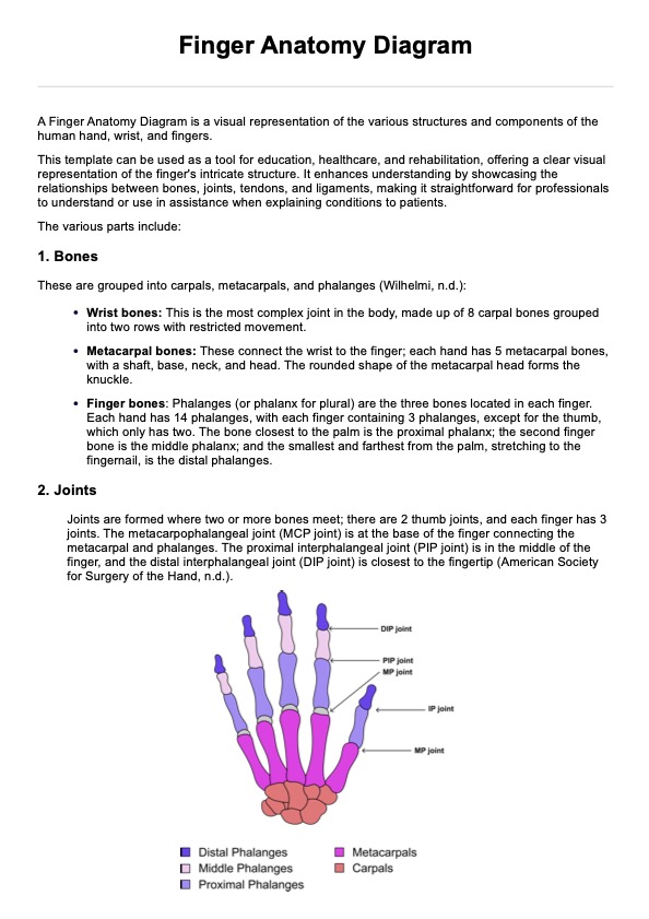 Click here to learn more about the finger's anatomy. Download a free Finger Anatomy Diagram PDF for your practice.