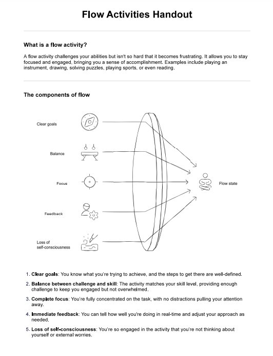 Discover the benefits of the Flow Activities Handout for promoting flow experiences and improving mental health with practical, engaging activities.