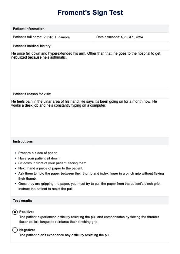 Froment's Sign Test Template