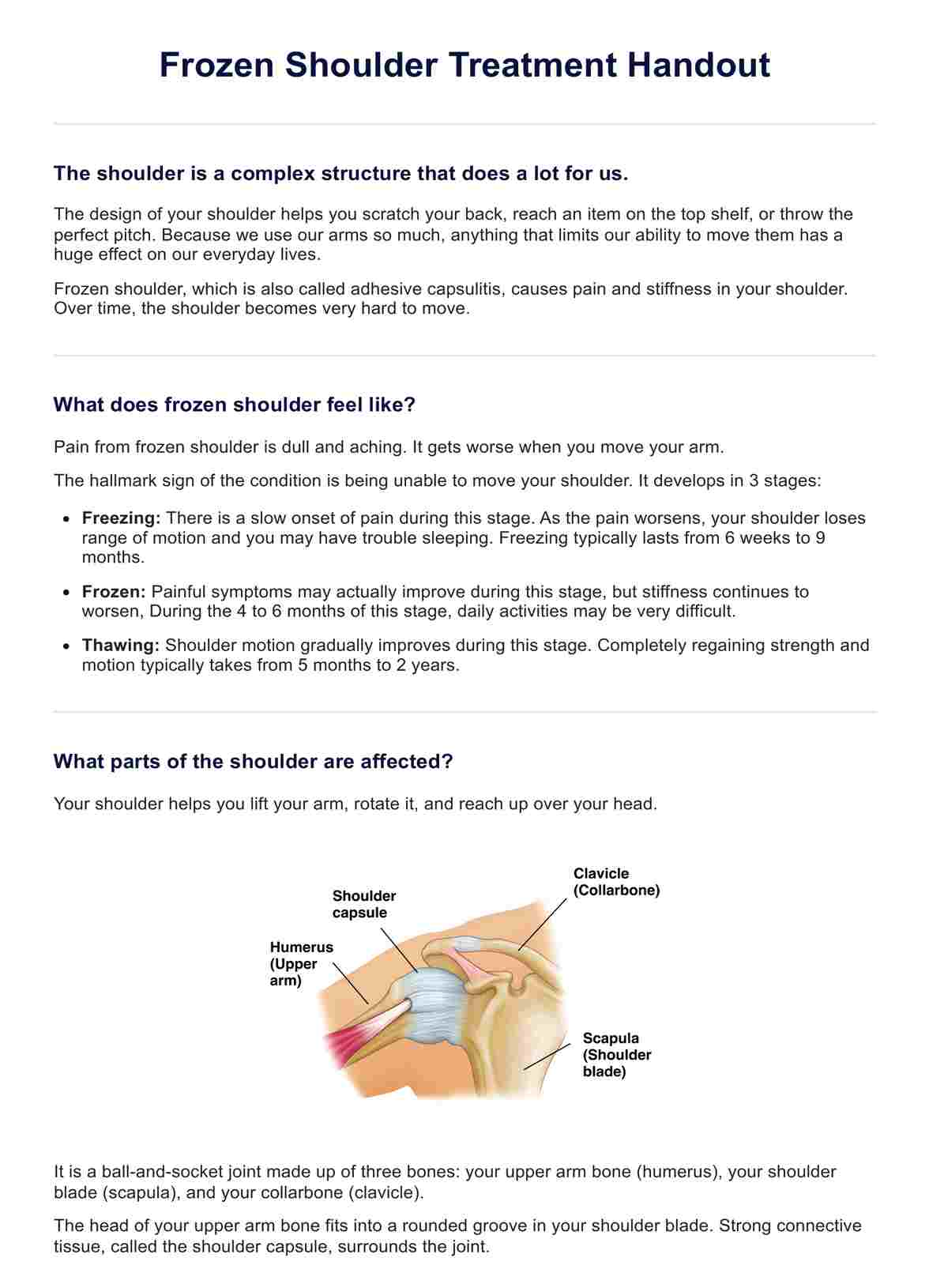 Learn about frozen shoulder treatment options through Carepatron's free PDF download. Explore different recommendations and examples to help you manage this condition effectively.