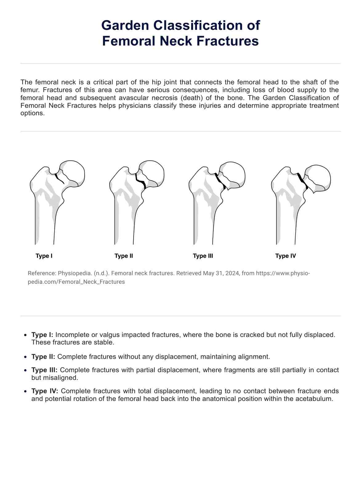 Explore the Garden Classification for femoral neck fractures: a key guide for diagnosing severity, guiding treatment, and predicting outcomes.