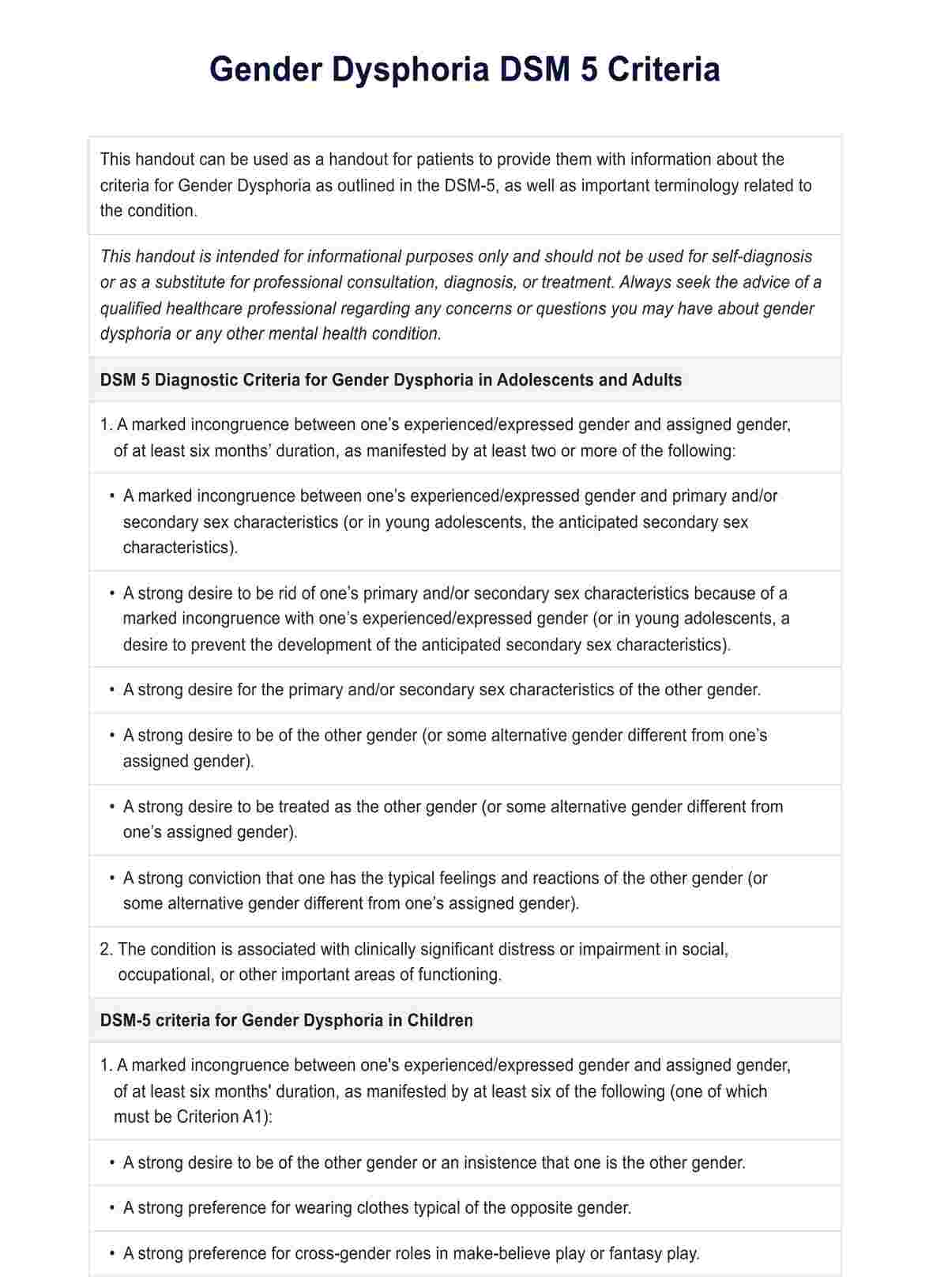 Explore the DSM-5 criteria for Gender Dysphoria with our guide and template, designed to assist with understanding and accurate diagnosis.