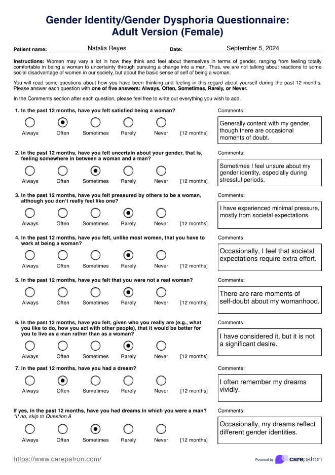 Confirming gender dysphoria typically involves a comprehensive assessment by a qualified mental health professional using tools like the Gender Dysphoria Quiz. This process includes evaluating the individual's experiences, feelings about their gender identity, and any distress related to their sex assigned at birth.