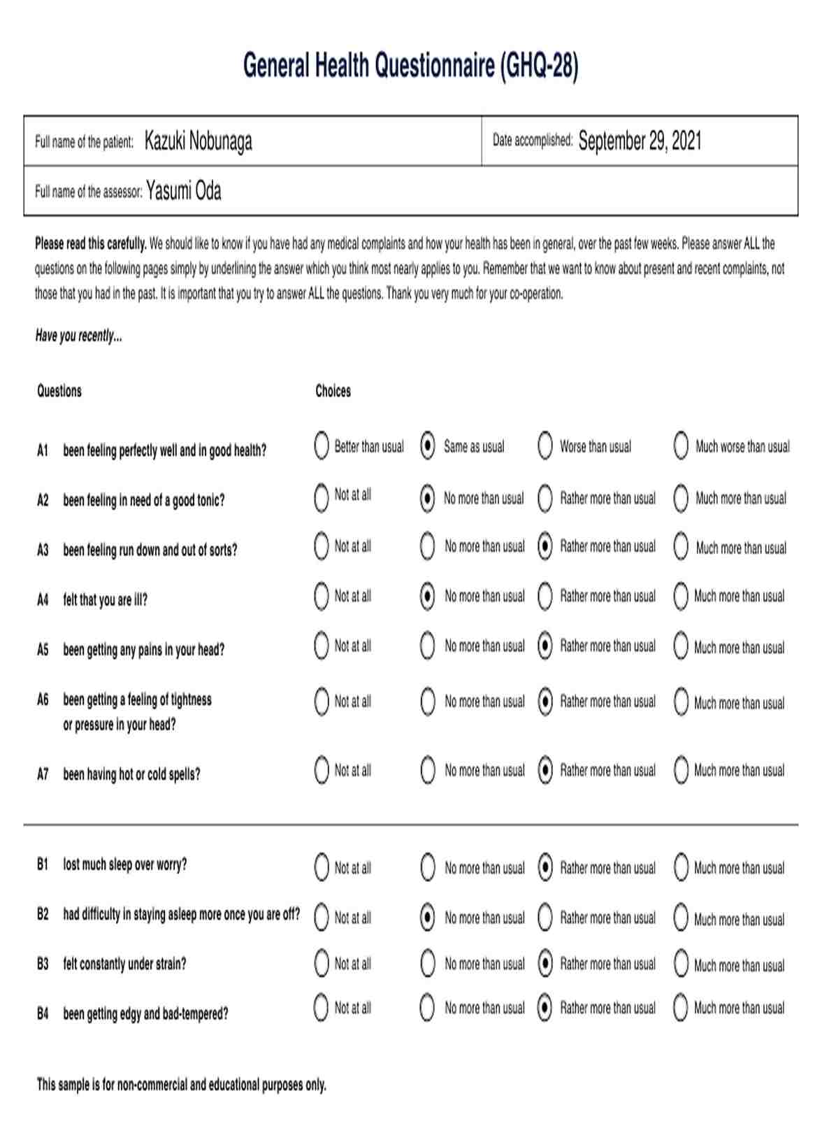 No, because it is a general questionnaire. Given its nature, using it might not be enough when it comes to assessing your patient, which is why we recommend that you check out our platform for other psychology and mental health-related tools to help you cover numerous angles and consider different perspectives.