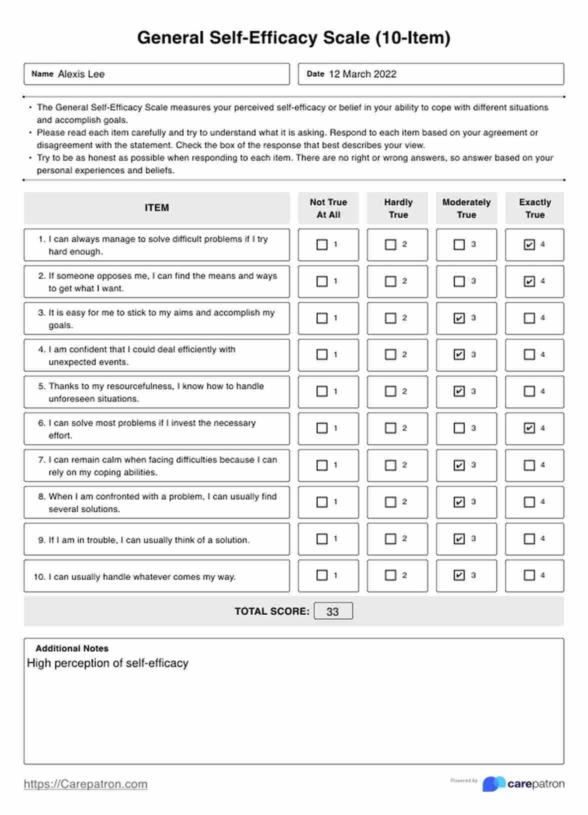 Evaluate your patient’s perceived self-efficacy using the General Self-Efficacy Scale (GSE). Get access to a free PDF template and example for your practice.