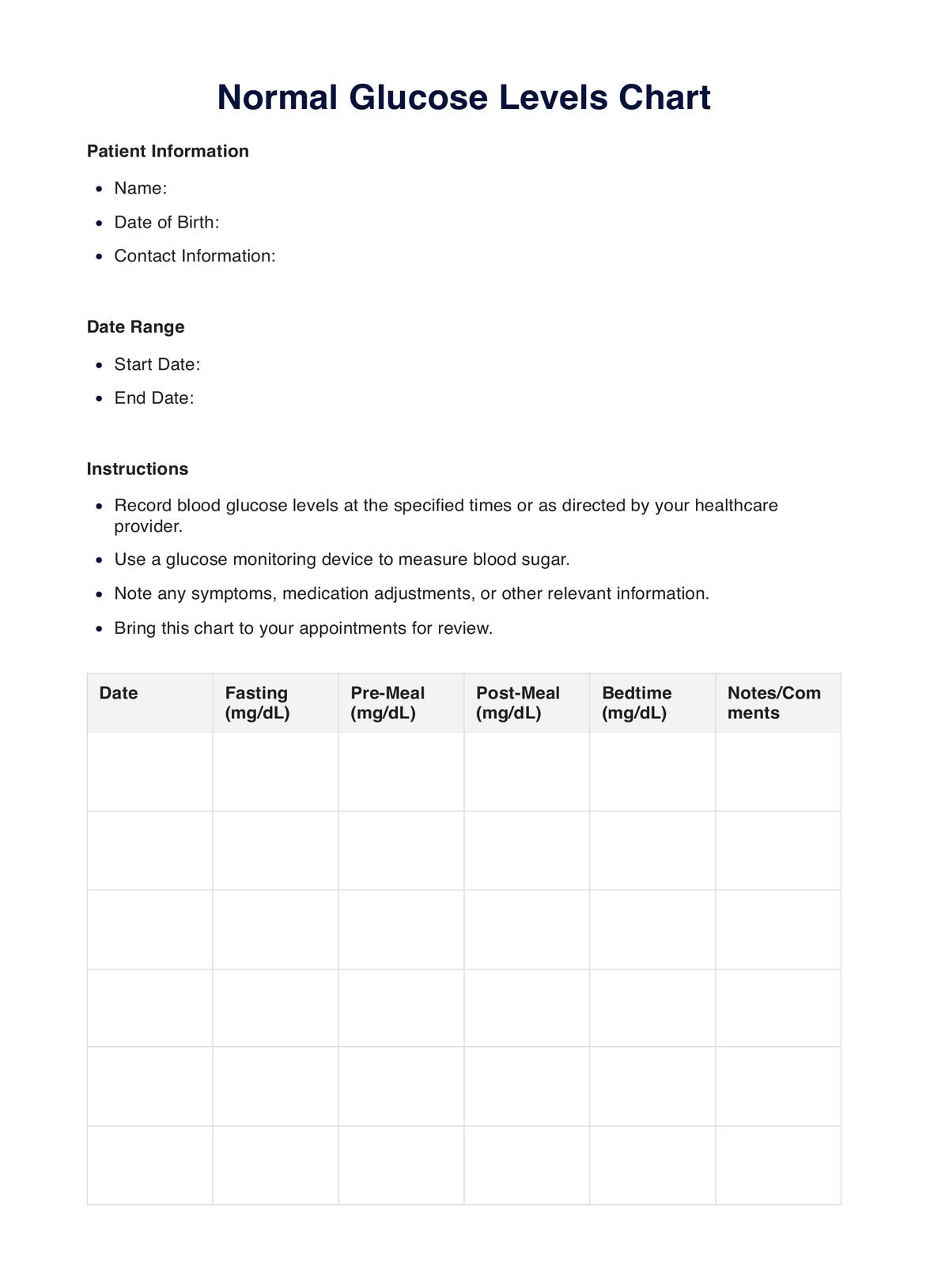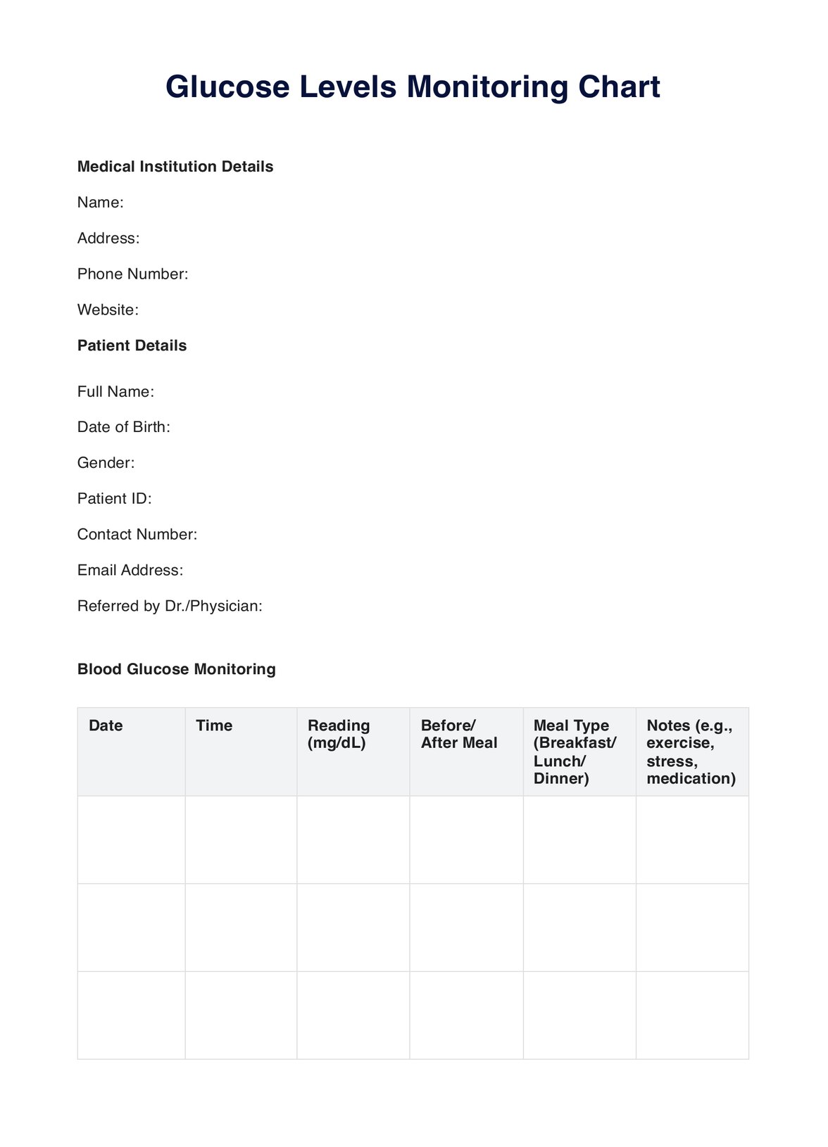 Track and manage your blood sugar effectively with Carepatron’s Glucose Levels Chart—a comprehensive guide for optimal diabetes care and informed decisions.