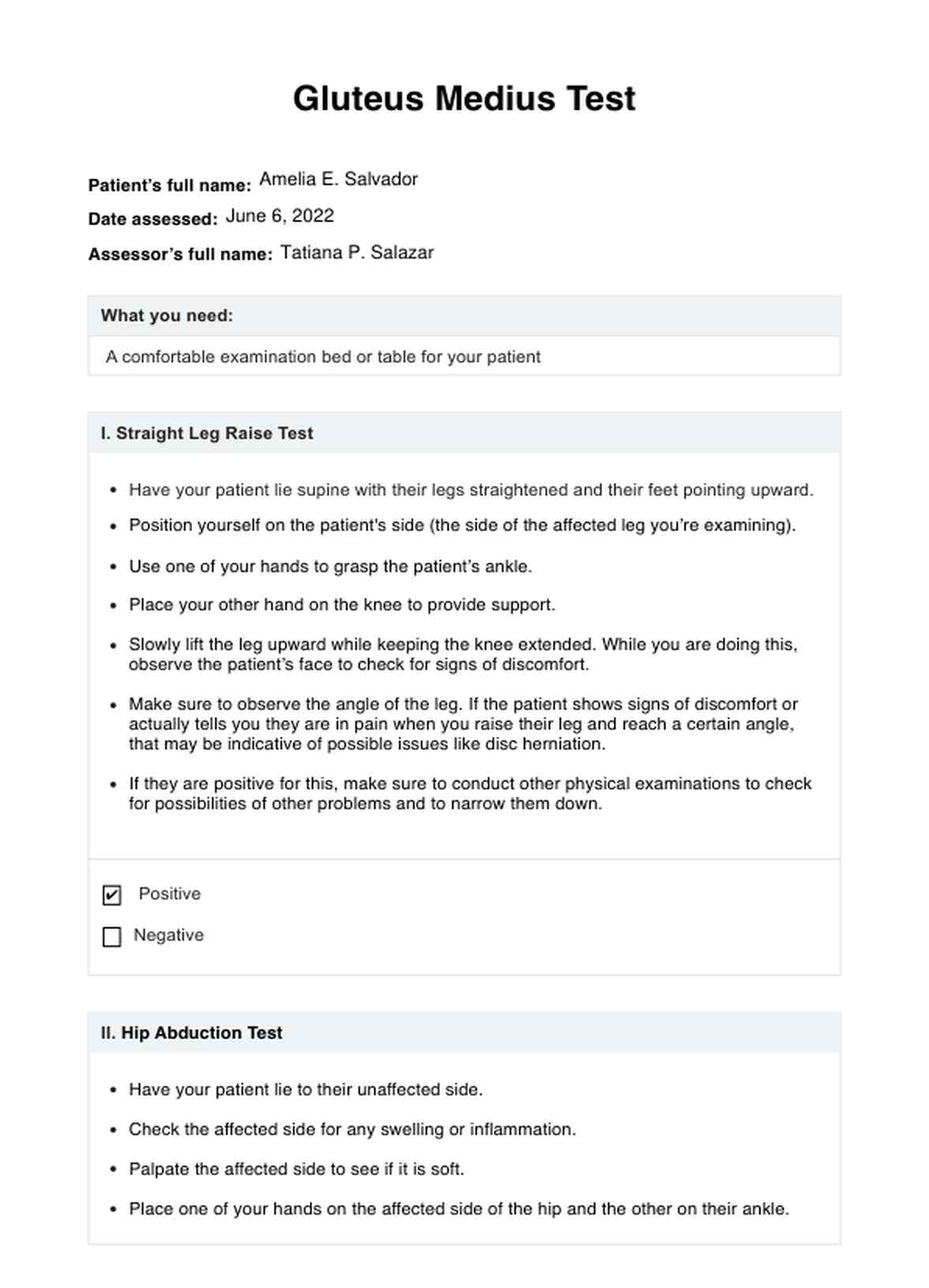 Gluteus Medius Test Template