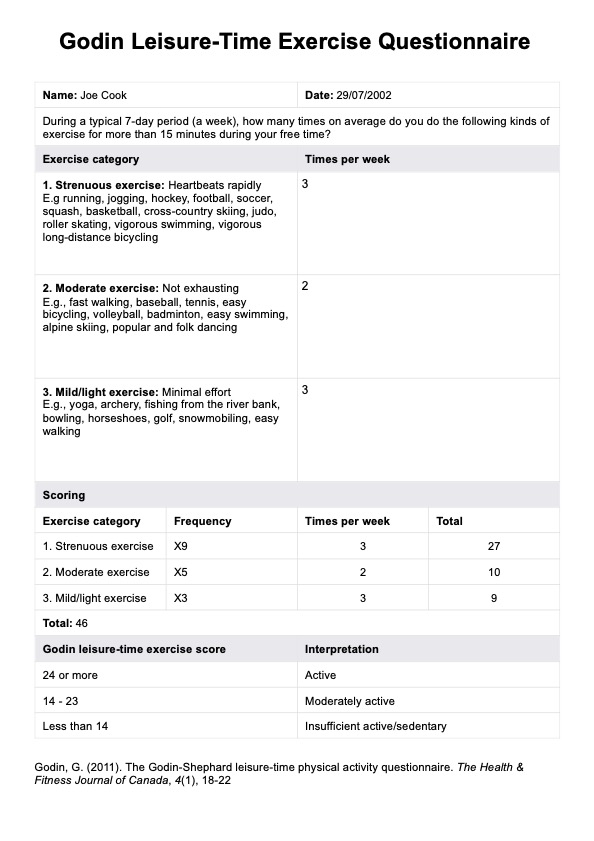 Click here to learn more about the Godin Leisure-Time Exercise Questionnaire and how to use it.