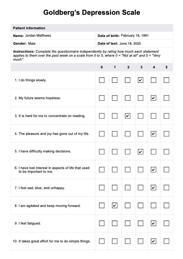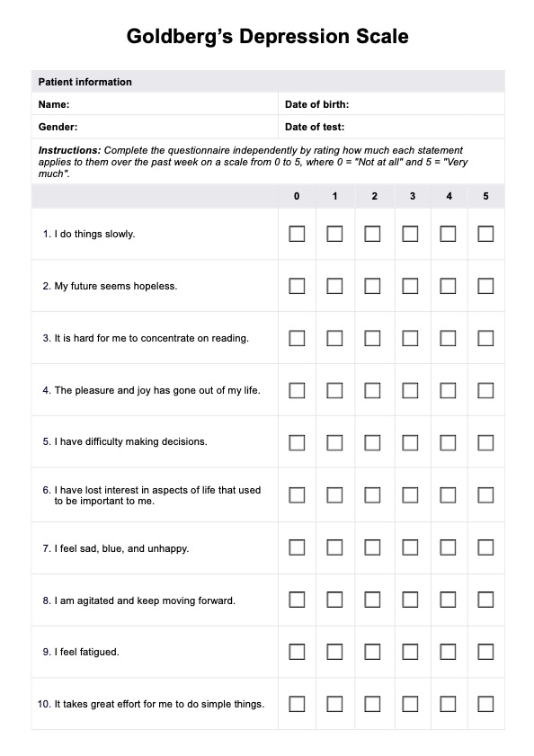 Goldberg Depression Test (Goldberg Depression Scale) Template