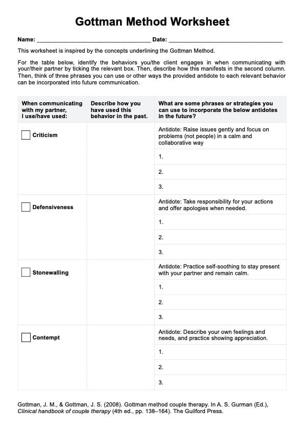 Help your clients stave off the four horsemen of relationships through this Gottman Method Worksheet!