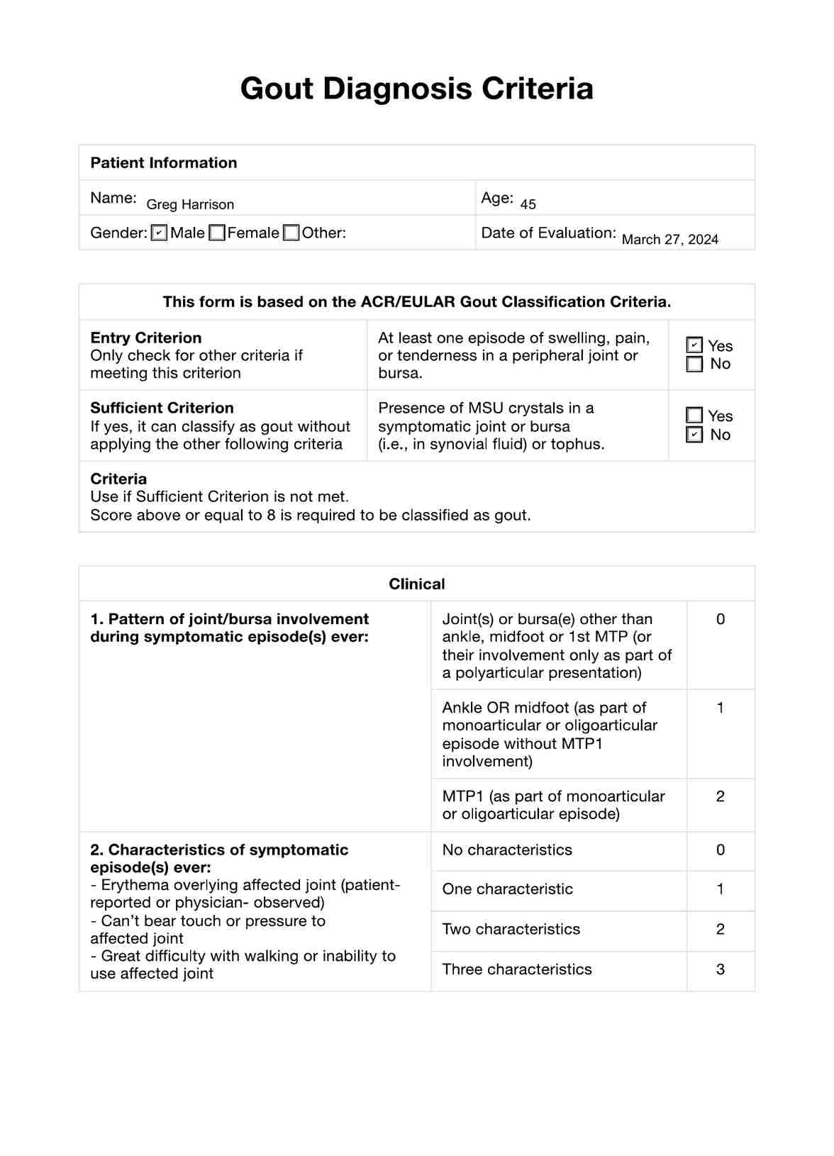 Uncover the essential Gout Diagnosis Criteria here, including symptoms, diagnostic tests, and the American College of Rheumatology guidelines.