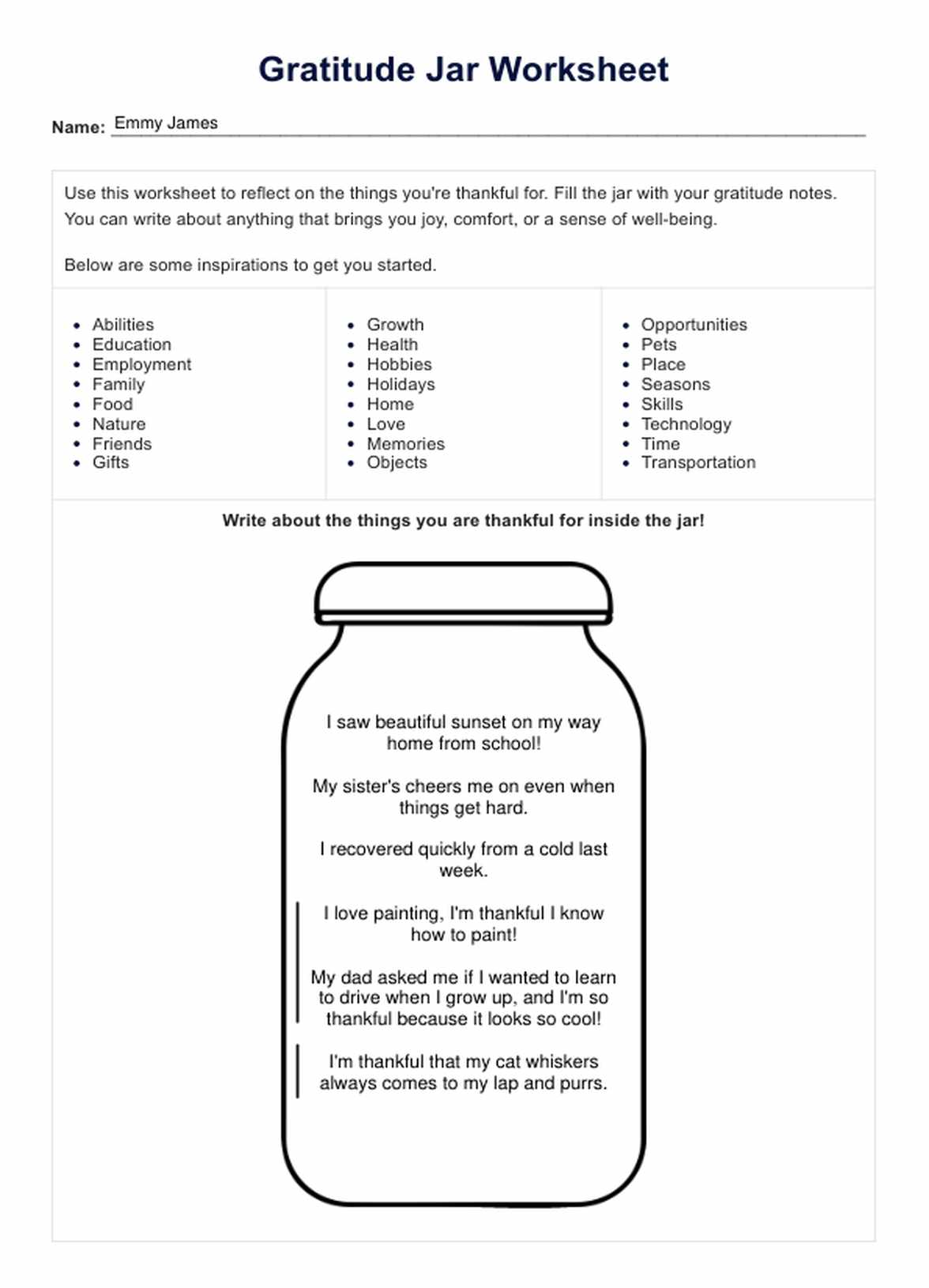 Enhance well-being in your practice with our Gratitude Jar Worksheet. Empower your clients to cultivate positivity and gratitude in their lives.