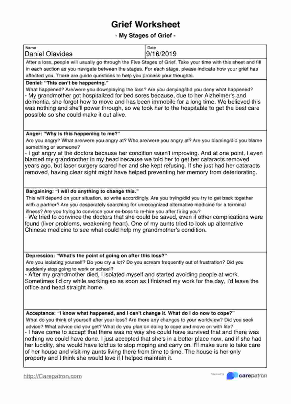 A grief worksheet is something that grief counselors may issue to patients in order to help them go through their grieving process. There are different kinds of grief worksheet examples, with this Stages of Grief being one of the most simple ones.