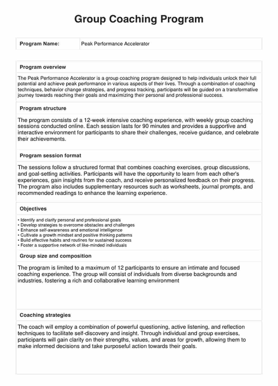 Group Coaching Program Template Template