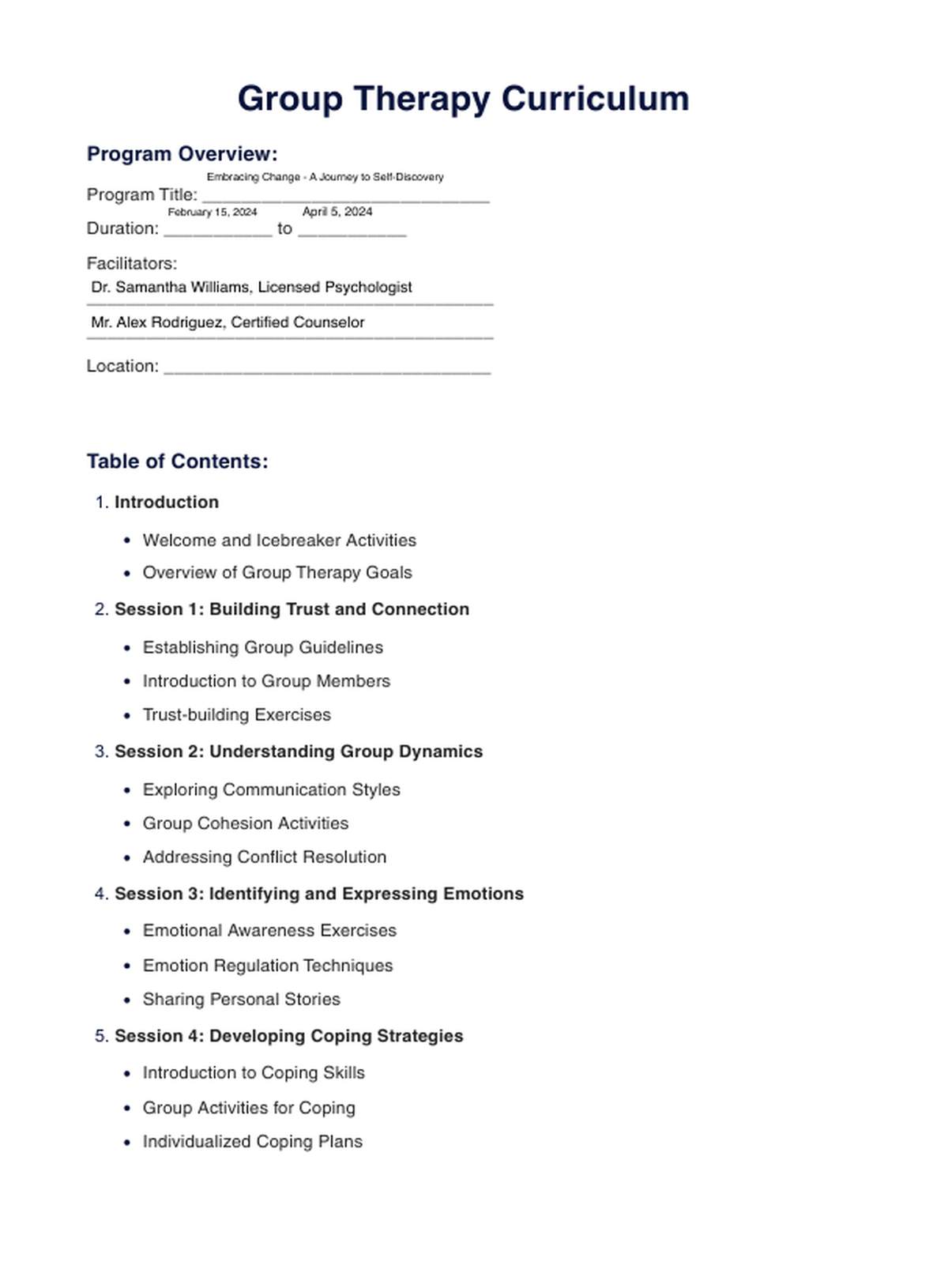 Group Therapy Curriculum PDF Template
