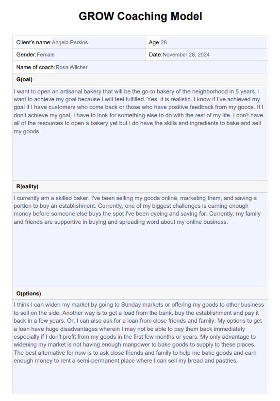 Medical mental health practitioners can use the GROW Coaching Model framework. However, it's more commonly used by life coaches in a group setting with team members or executive coaches.