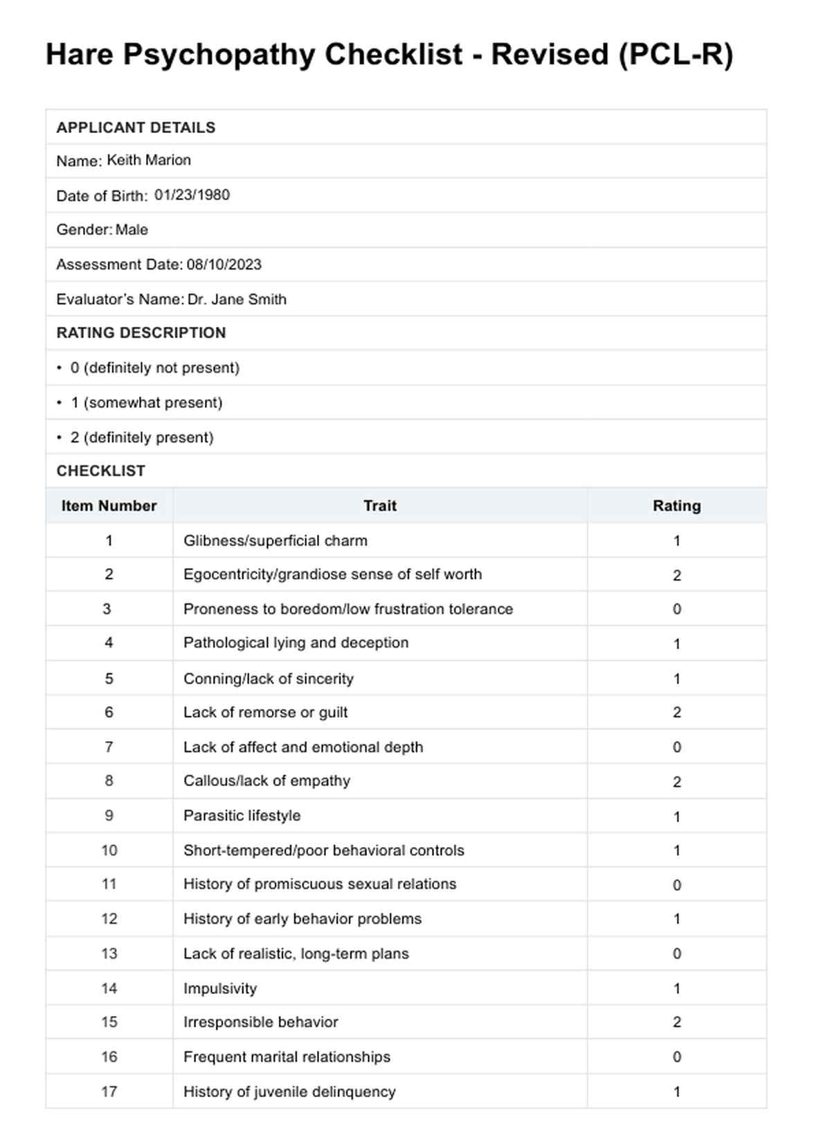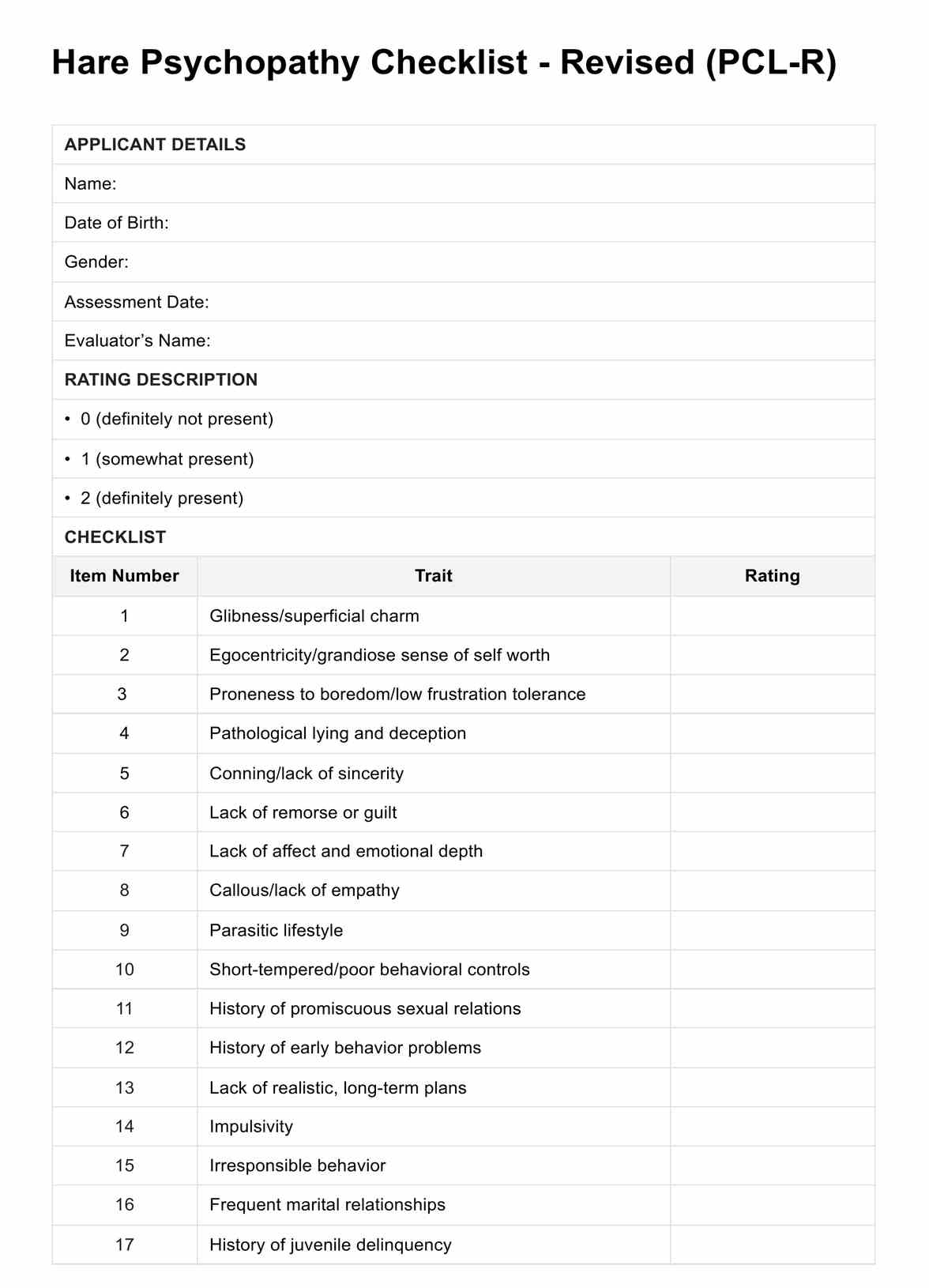 Hare Psychopathy Checklist - Revised Template