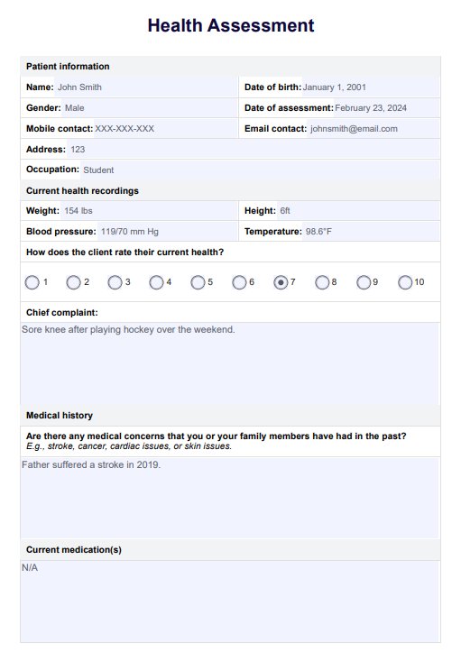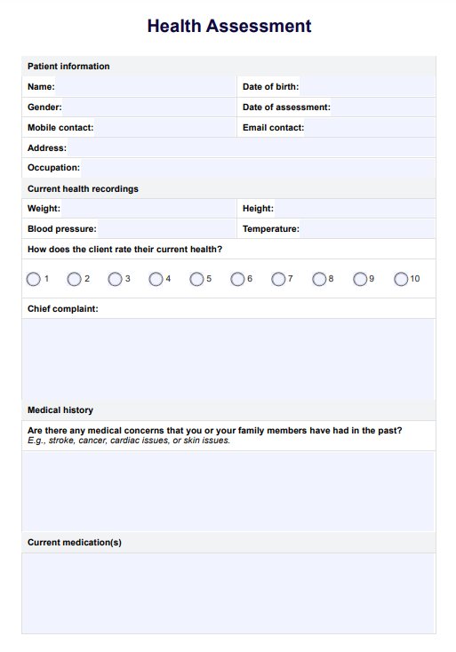 Health Assessment Template