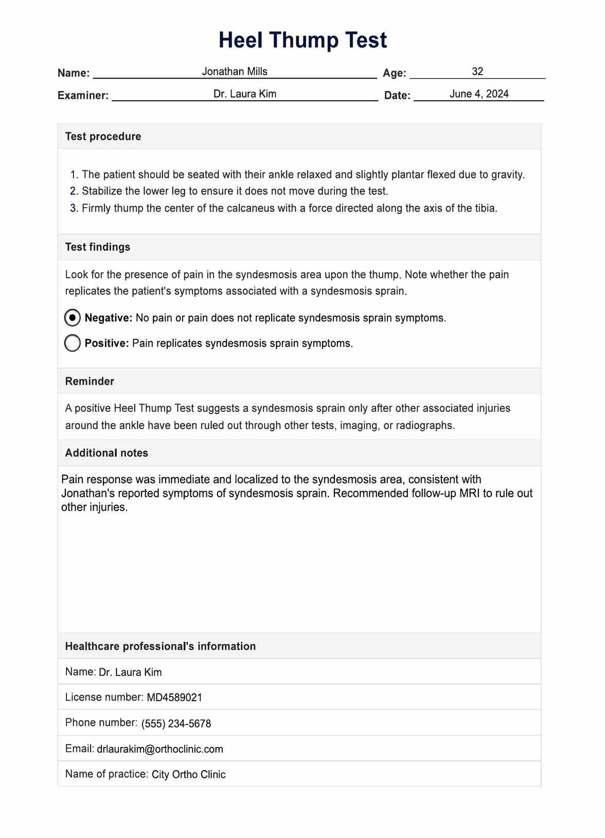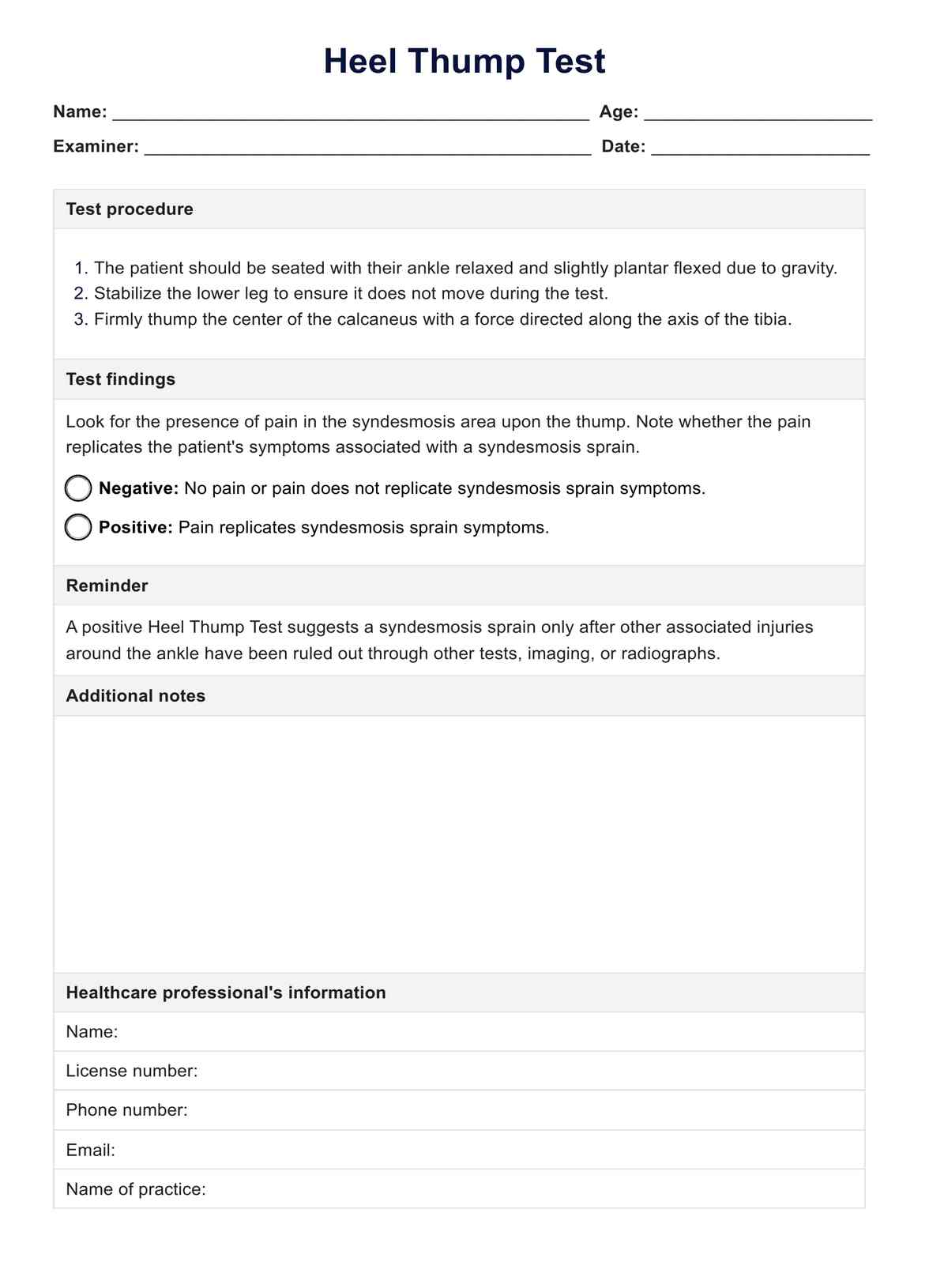 Learn how the Heel Thump Test helps diagnose syndesmosis injuries, including its procedure, benefits, and limitations, with our detailed guide and template.